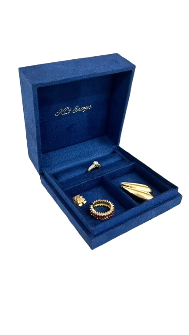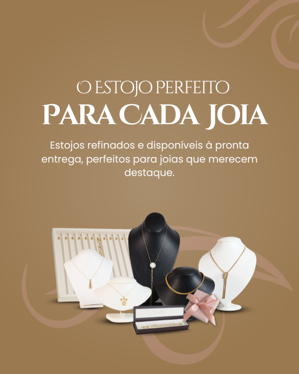 Estojos com acabamento premium que valorizam e protegem cada joia.