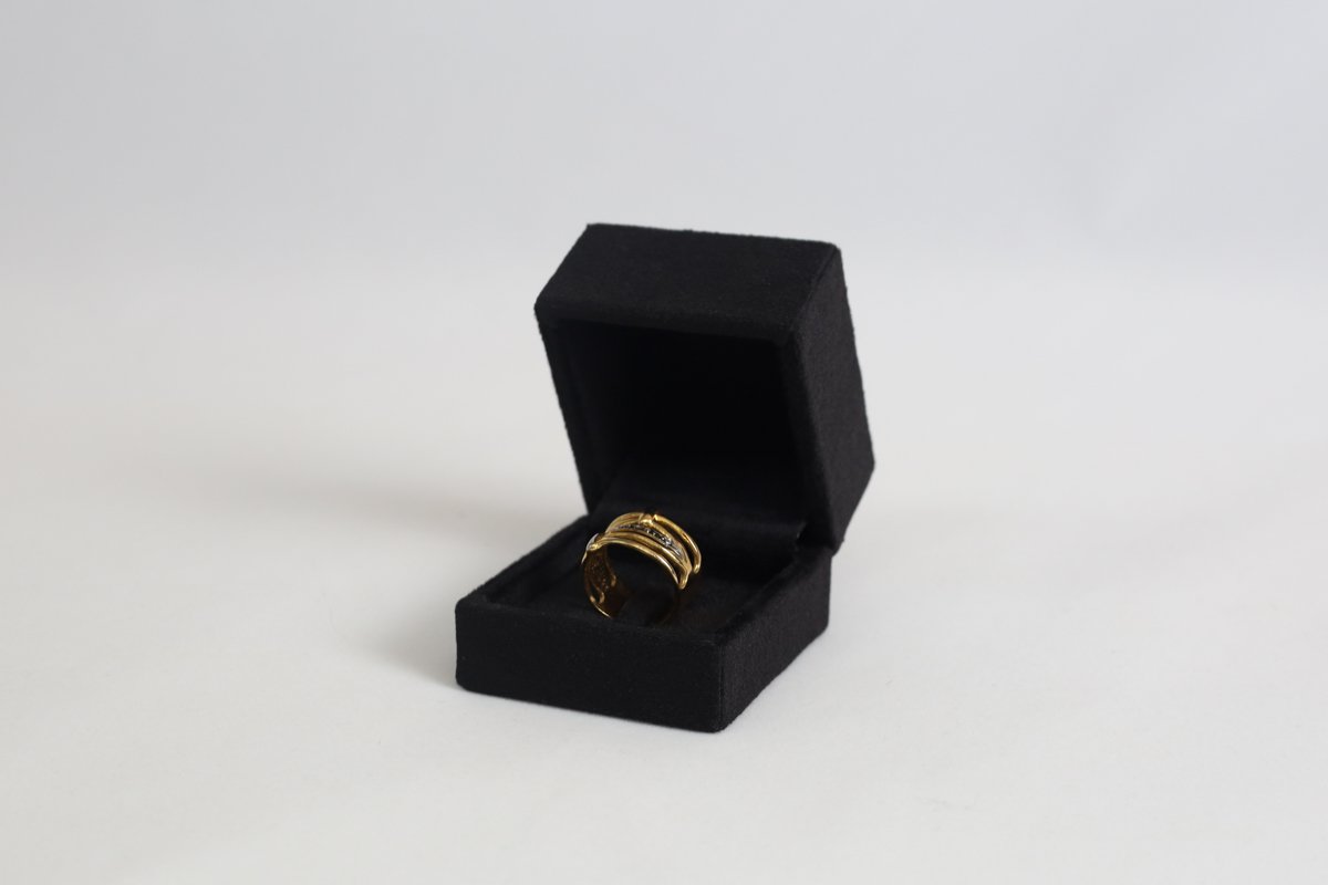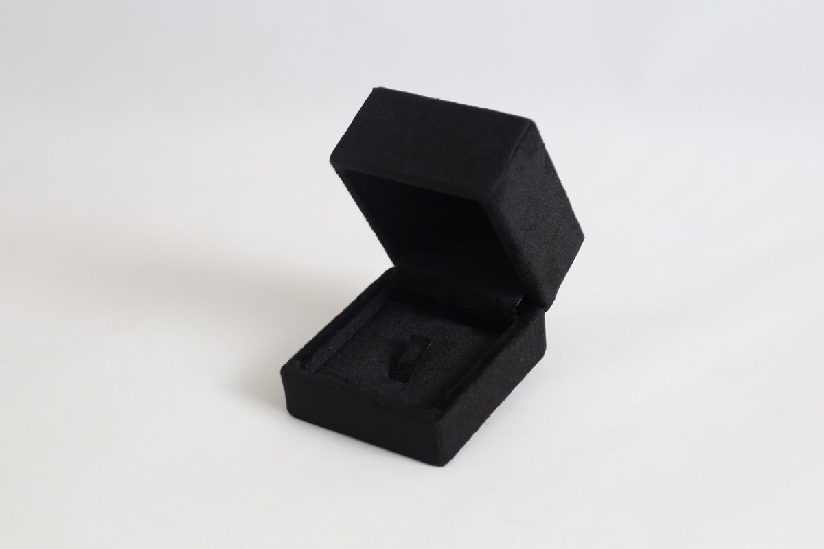 Estojo para anel com presilha revestido em suede.