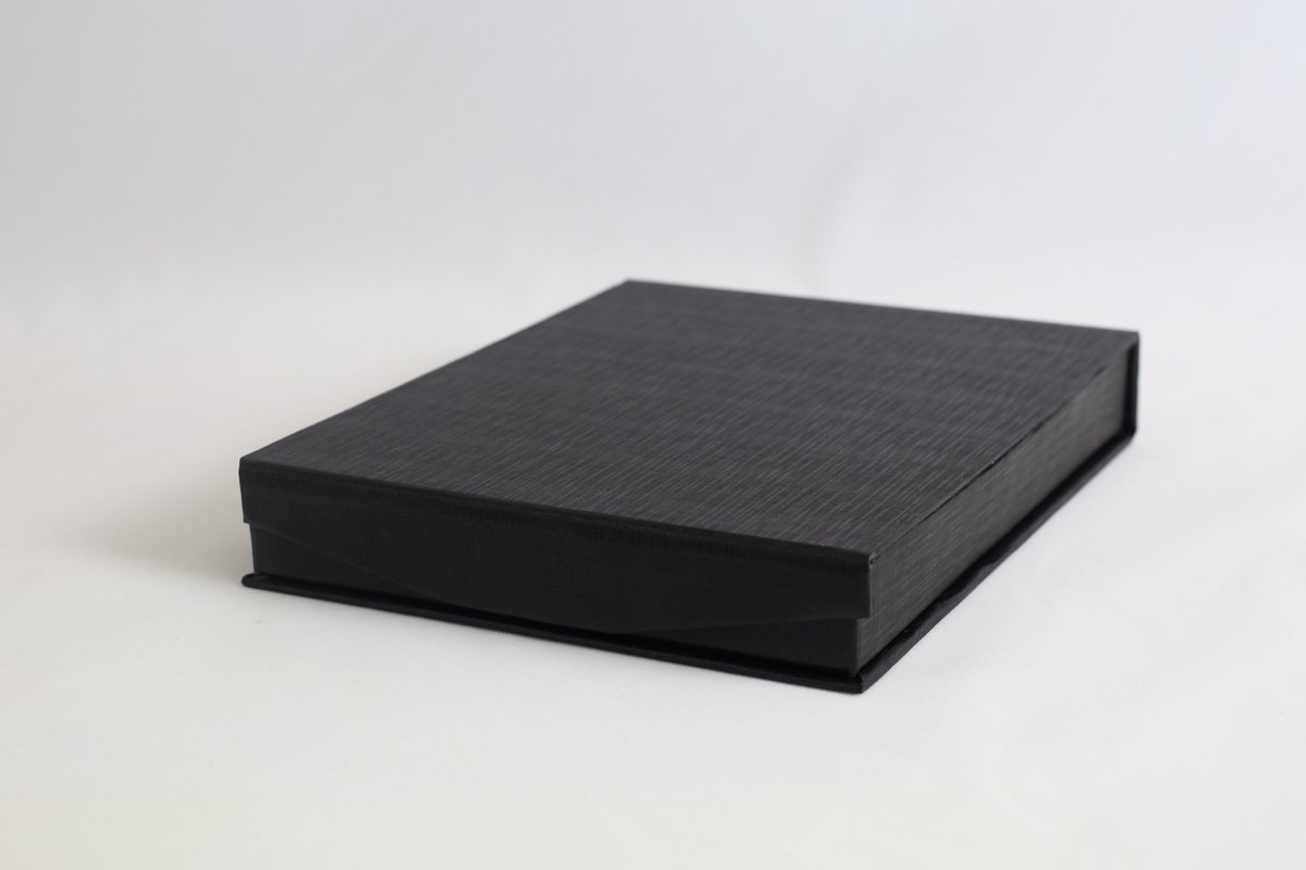 Revestimento externo em papel telado e interno em veludo.