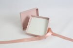 Estojo vide poche cartonado com revestimento interno em veludo e fechamento com fita de cetim.