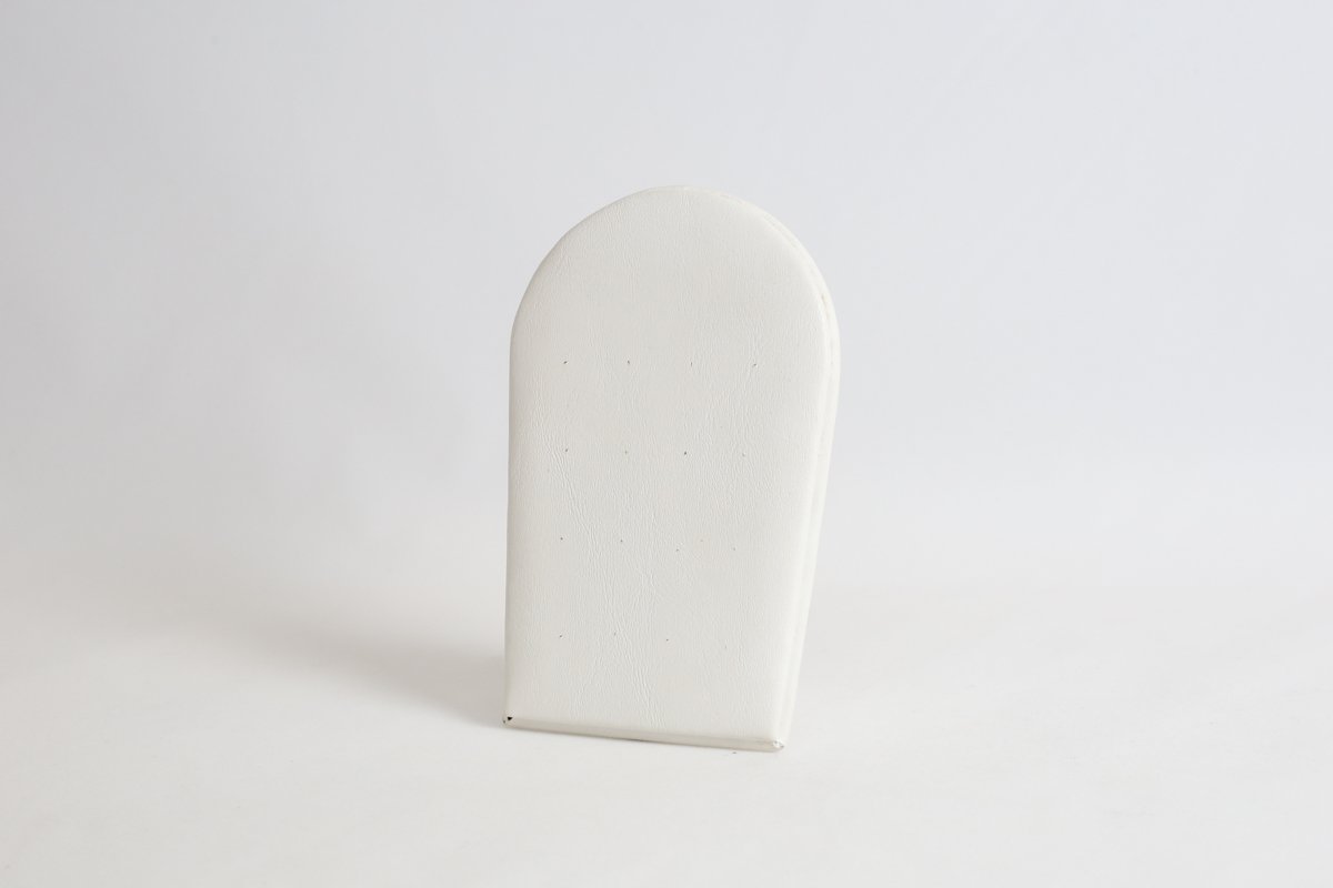 Expositor para anel e brinco em arco. Revestimento externo em corino. Medidas: 4x3,5x7,5cm. *joias meramente ilustrativas.