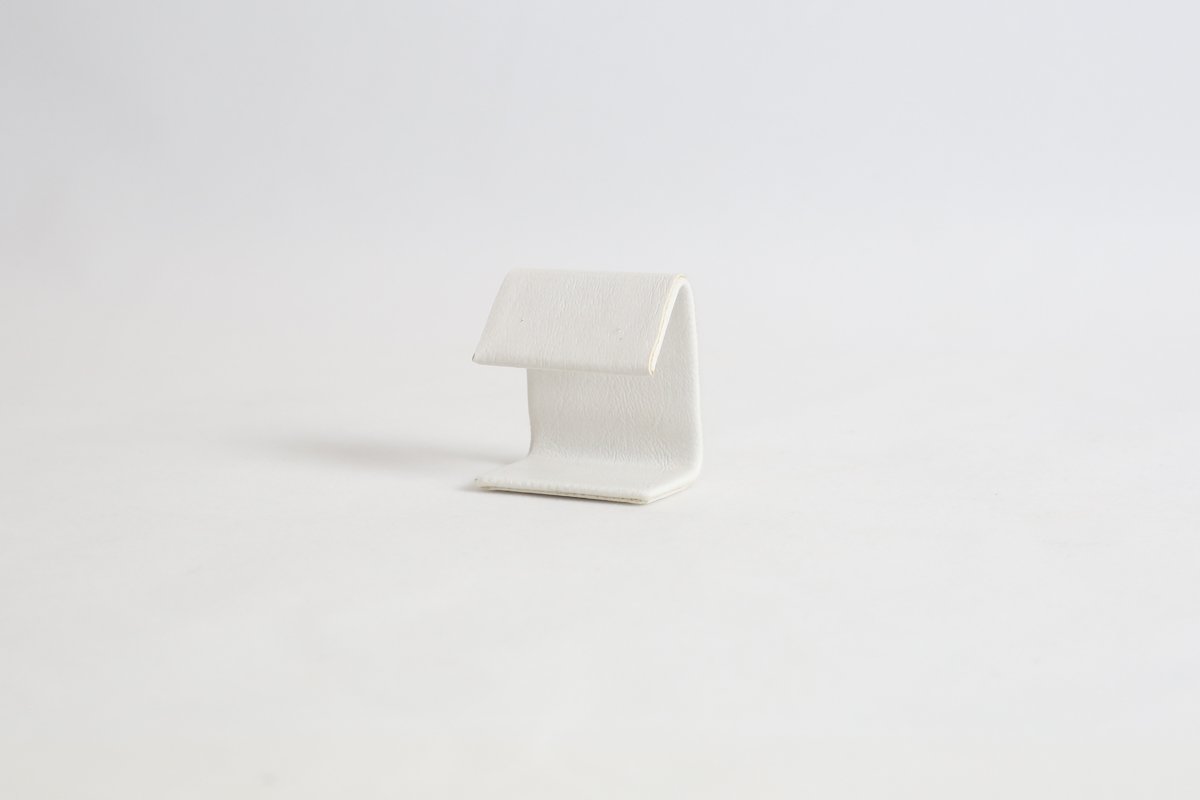 Expositor para anel e brinco em arco. Revestimento externo em corino. Medidas: 4x3,5x7,5cm. *joias meramente ilustrativas.
