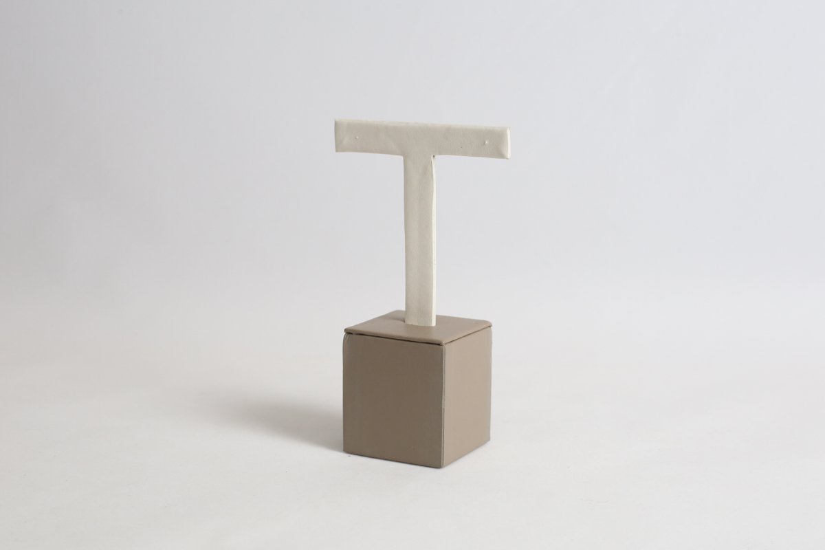 Expositor para brinco e anel em arco. Exterior revestido em corino. Medidas: 5x5x10,5cm. *joias meramente ilustrativas.