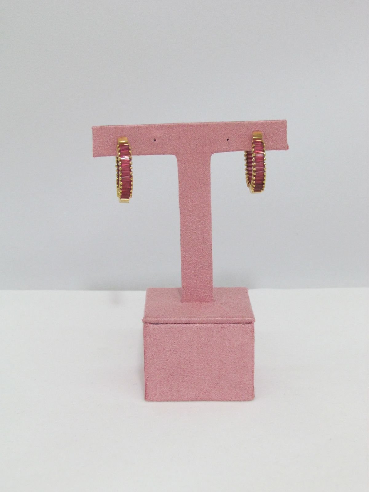 Expositor para brinco em arco. Revestimento externo em corino. Medidas: 3,5x2,5x4cm. *joias meramente ilustrativas.