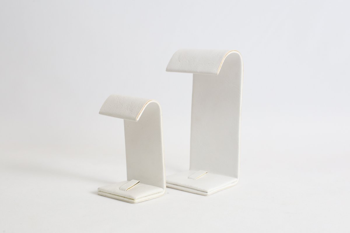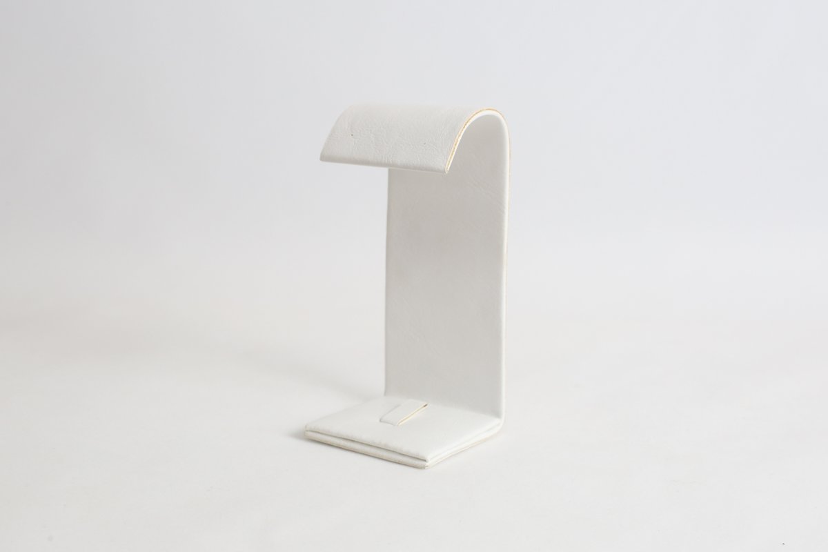 Expositor para anel e brinco em arco. Revestimento externo em corino. Medidas: 4x3,5x7,5cm. *joias meramente ilustrativas.